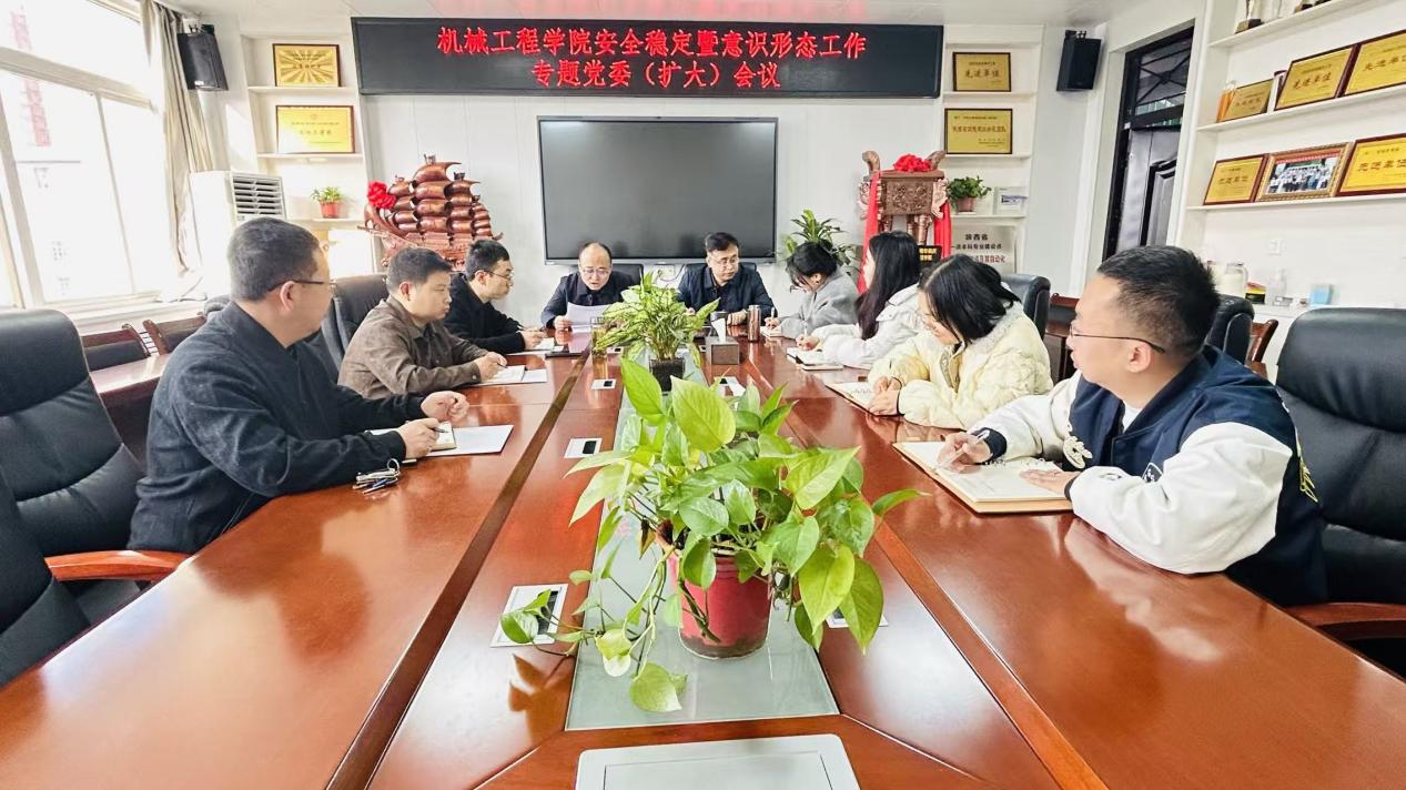 会议要求,一要压实主体责任,健全“党政同责、‘一岗双责’、齐抓共管、失职追责”的责任体系,确保责任落实到岗、到人。二要聚焦重点领域,针对实验室安全、消防安全、网络舆情、师生思想动态等关键环节,开展全覆盖、无死角的风险隐患排查整治。三要完善长效机制,加强日常研判预警和应急处突能力建设,强化协同联动,形成工作合力,全力保障校园和谐稳定,为学院高质量发展提供坚实保障。(机械工程学院 文/刘萍 图/雷天琴 审核/鲁海涛)