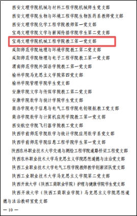 11月10日,中共陕西省委教育工委公布了第五批陕西高校党建工作示范高校、标杆院系、样板支部培育创建名单,我院教工第一党支部入选第五批陕西高校党建工作样板支部培育创建单位。