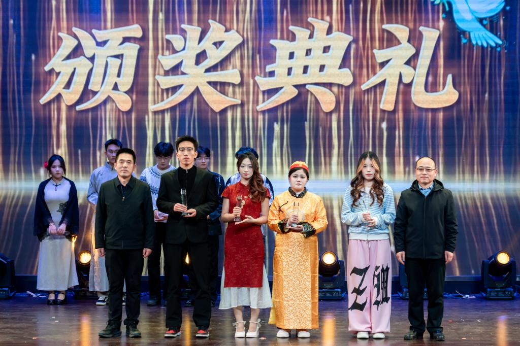 颁奖仪式上,机械工程学院党委书记鲁海涛、计算机学院党委书记王林为获奖节目分别颁发奖杯。