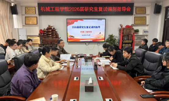 3月18日下午,机械工程学院在413会议室召开2026届研究生复试调剂专题指导会。学院党委副书记席璇方,副院长李旭波,系主任郭便、乔勋、王若羽,就业辅导员王海洋及50余名学生参加会议,会议由副院长王玮主持。